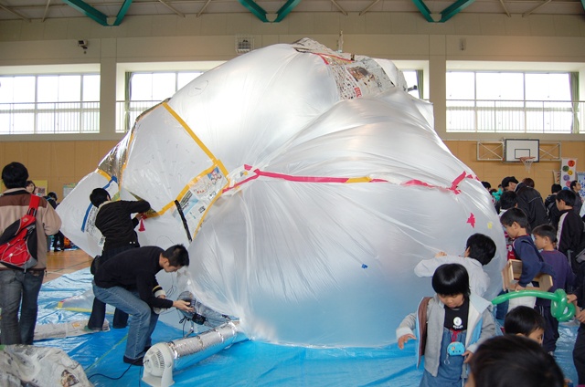 提出した企画書では『かみふうせん』の企画の予定で、それに向けて準備をしていた。しかし当日の天候が雨のため、イベント全体が屋内で行うことに。急遽企画を変更し、身の回りにある素材を集めて貼り合わせ空気の部屋を作ることにする。