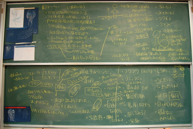 参加者の話し合いによって海月の形をした気球に決定した。海月が海を飛び出し、月に会いに行く物語を中学生が考え、物語の朗読に合わせて海月を飛ばした