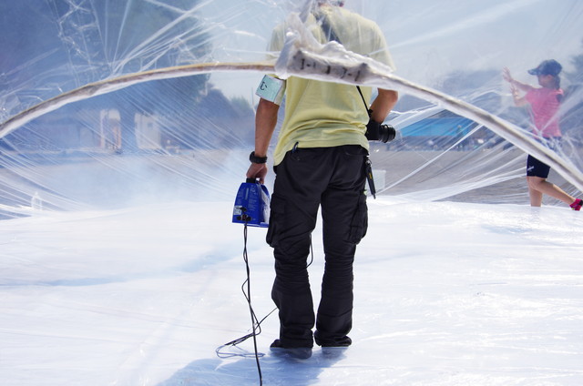 直径7メートル、高さ9メートルの卵型のビニール製のドームを膨らませ、内部に霧を充満させた。