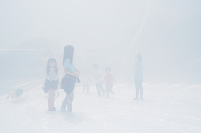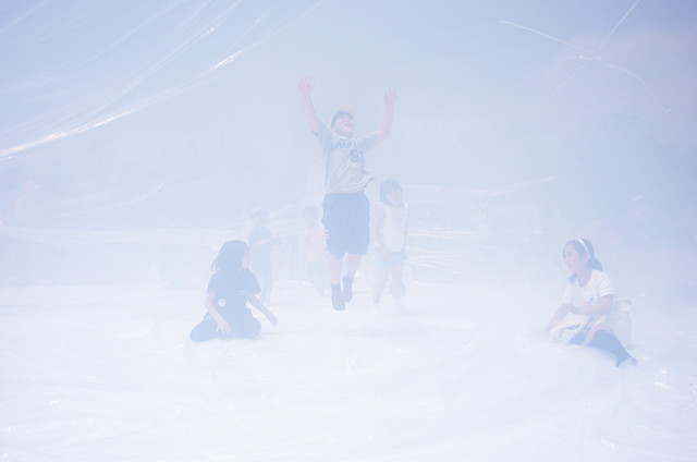 ドームの中の空間は柔らかい光に包まれる。ドームに入った子どもたちは、先にあるものを見るために、さまよいながら霧の空間を進む。ドームが裂かれると、霧の中から子どもたちが現れる。子どもたちの目には、霧が晴れると同時に通常の世界が広がる。