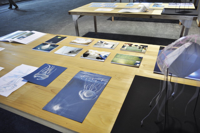 過去6年間の制作活動を、模型、ドローイング、写真などで紹介する傍ら、徳島市内を網目状に流れる河川の流れが、海というひとつの集合体へと収束する過程をテーマとした気球を制作し、展示期間の終盤に、展示会場に訪れた人とのフライトを試みた。