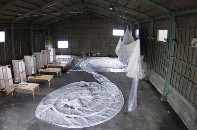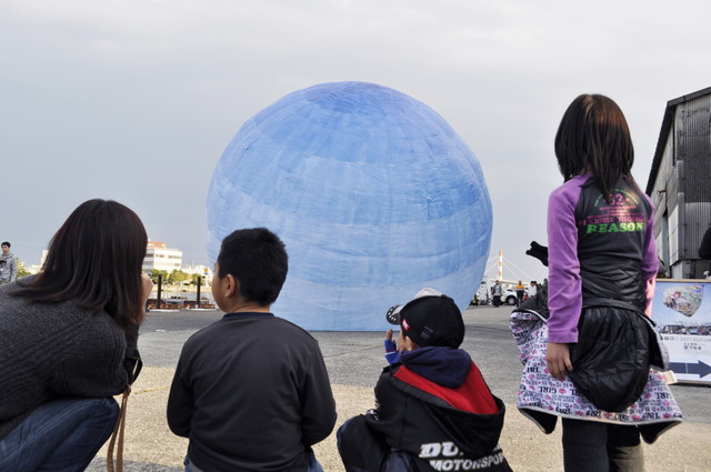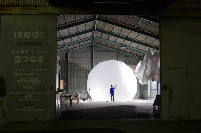 持続可能な環境芸術の開発と発信を推進するisadcの展示に出展。徳島市に3週間滞在しながら、新町川埠頭倉庫で、これまでのふくらむの活動の展示と、新作である「海から空へ」のフライトを行った。